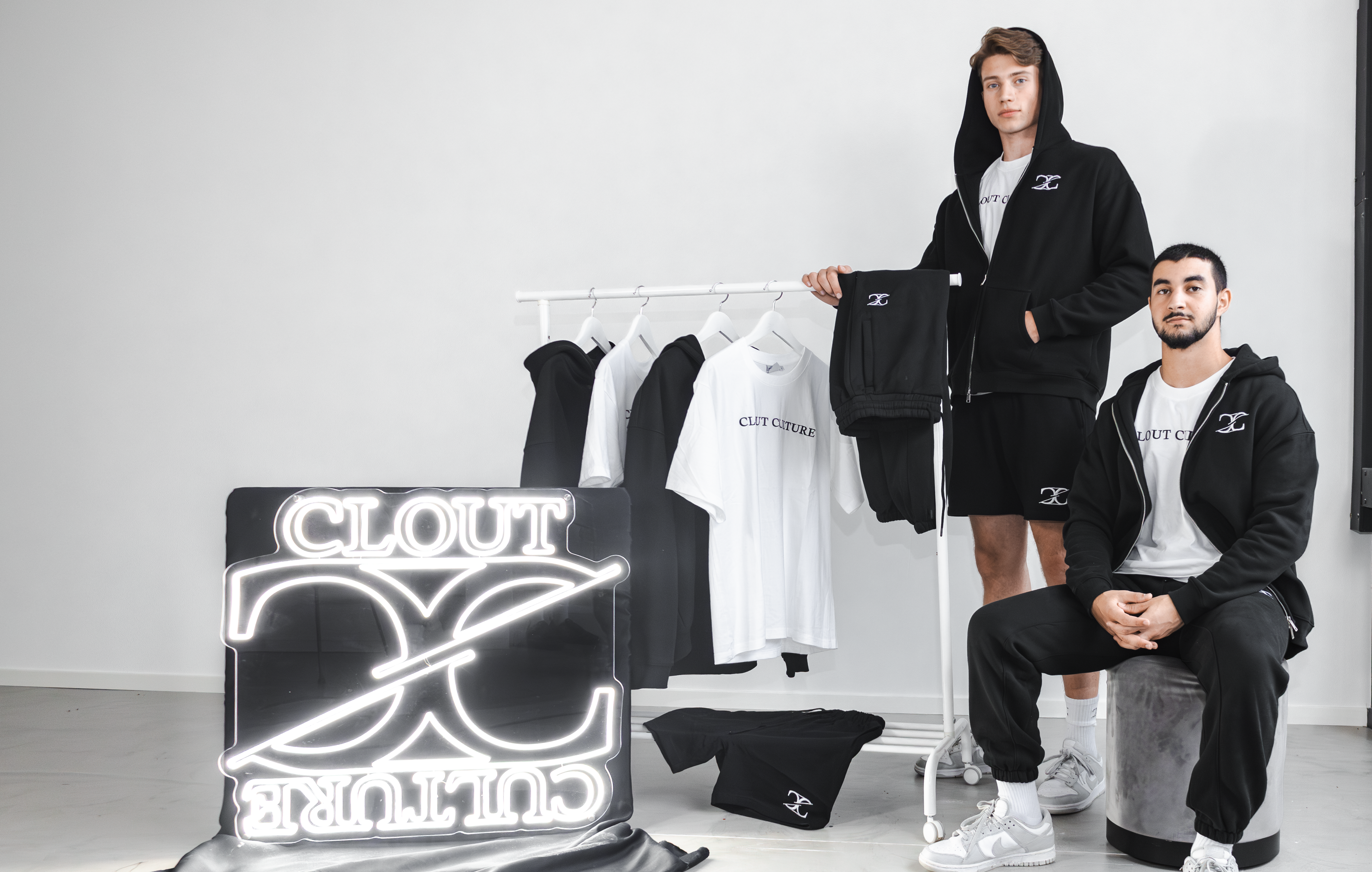 Clout Culture's casual comfort collection. Featuring comfortable zip-up hoodies, joggers, shorts and the simple white tee. A clean collection featuring black and white products.