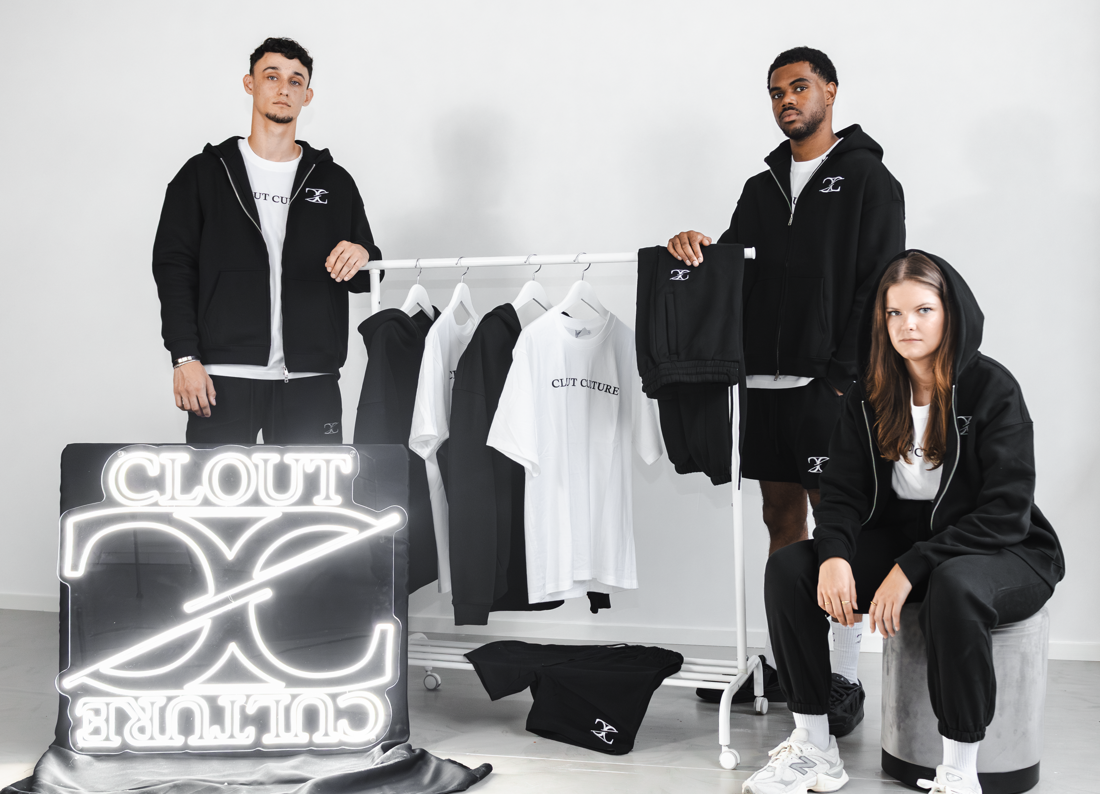 Clout Culture's casual comfort collection. Featuring comfortable zip-up hoodies, joggers, shorts and the simple white tee. A clean collection featuring black and white products.